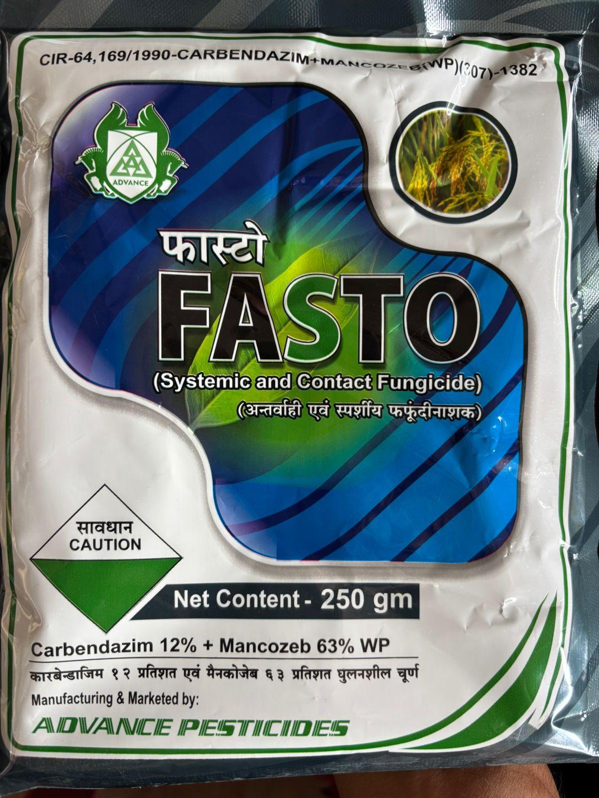 Product Description: Fast by Advance Pesticide is a highly effective and widely used fungicide that offers dual protection against a broad spectrum of fungal diseases in various crops. This powerful formulation combines the systemic action of Carbendazim with the contact action of Mancozeb, providing both preventive and curative control. It helps in protecting crops from existing infections and preventing new ones from taking hold, ensuring healthier plants and enhanced yields.